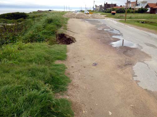 Piles of sand block the street to car traffic. Apparently the exceptionally heavy rain last week carved out whatever caused the rambla (waterfront road) to collapse three years ago. You can see the new crack forming halfway to the missing chunk. When all is done, they’ll dump in a bunch of sand, pave it (maybe), and that will be that. Until next time.