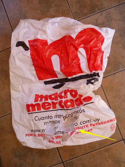 I’m cleaning the casita and was glad to find in a bathroom drawer this large bag from Macro Mercado, because there’s a lot of crap in the casita that needs to go away and a big bag helps. Problem is, the bag, advertising its biodegradability, has already started to go away itself….