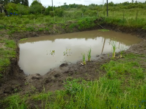 Given the heavy rain yesterday, I was eager to see if our tajamar had filled. According to locals, after the first filling, the draining water seals any porous regions, and the pond becomes more watertight.
