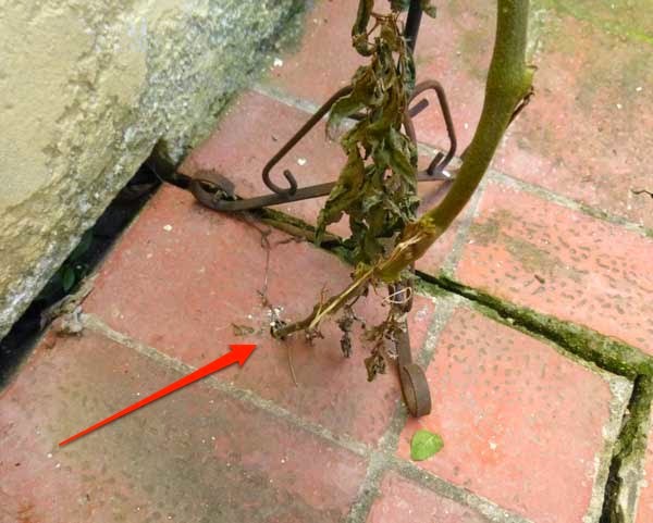 It’s right below an outdoor shower, so I watered it for a few minutes today. I put the fireplace tool holder to support it several weeks ago, since it had grown beyond its ability to support itself.